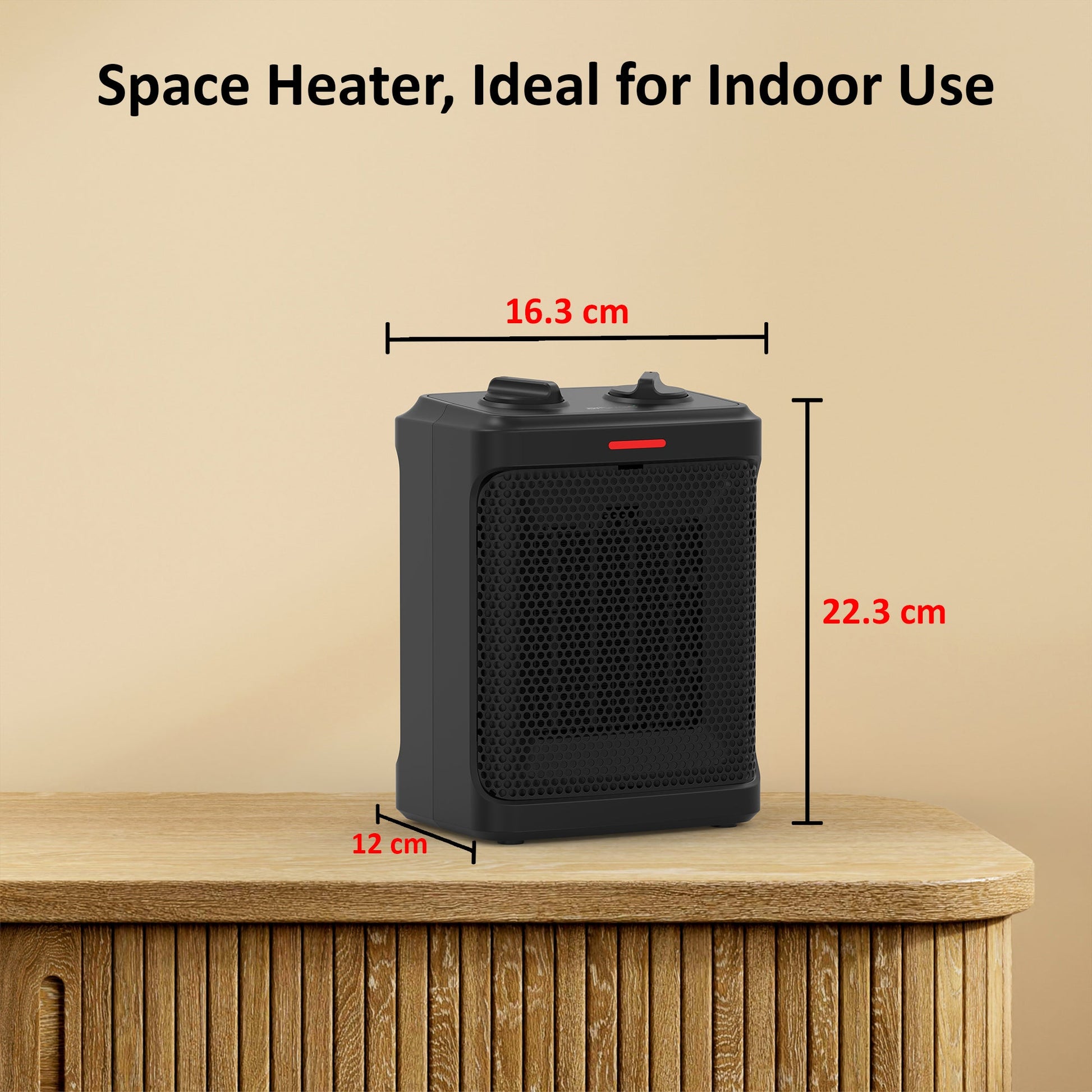 Compact Design, Big Results: The space-saving profile (16.3 x 12 x 22.3 cm) makes this heater ideal for small areas like offices, bedrooms, or personal desks. Enjoy targeted warmth without sacrificing space.