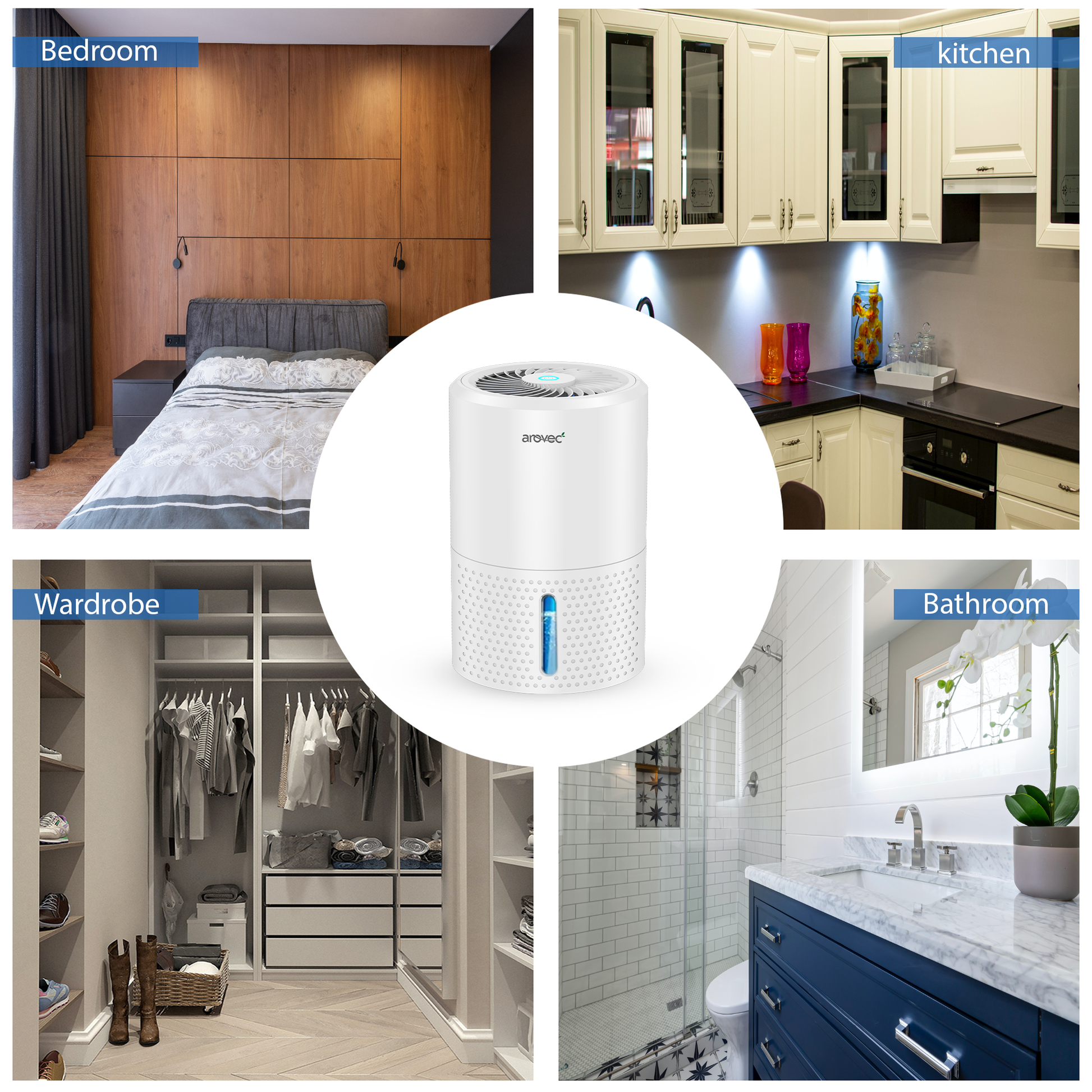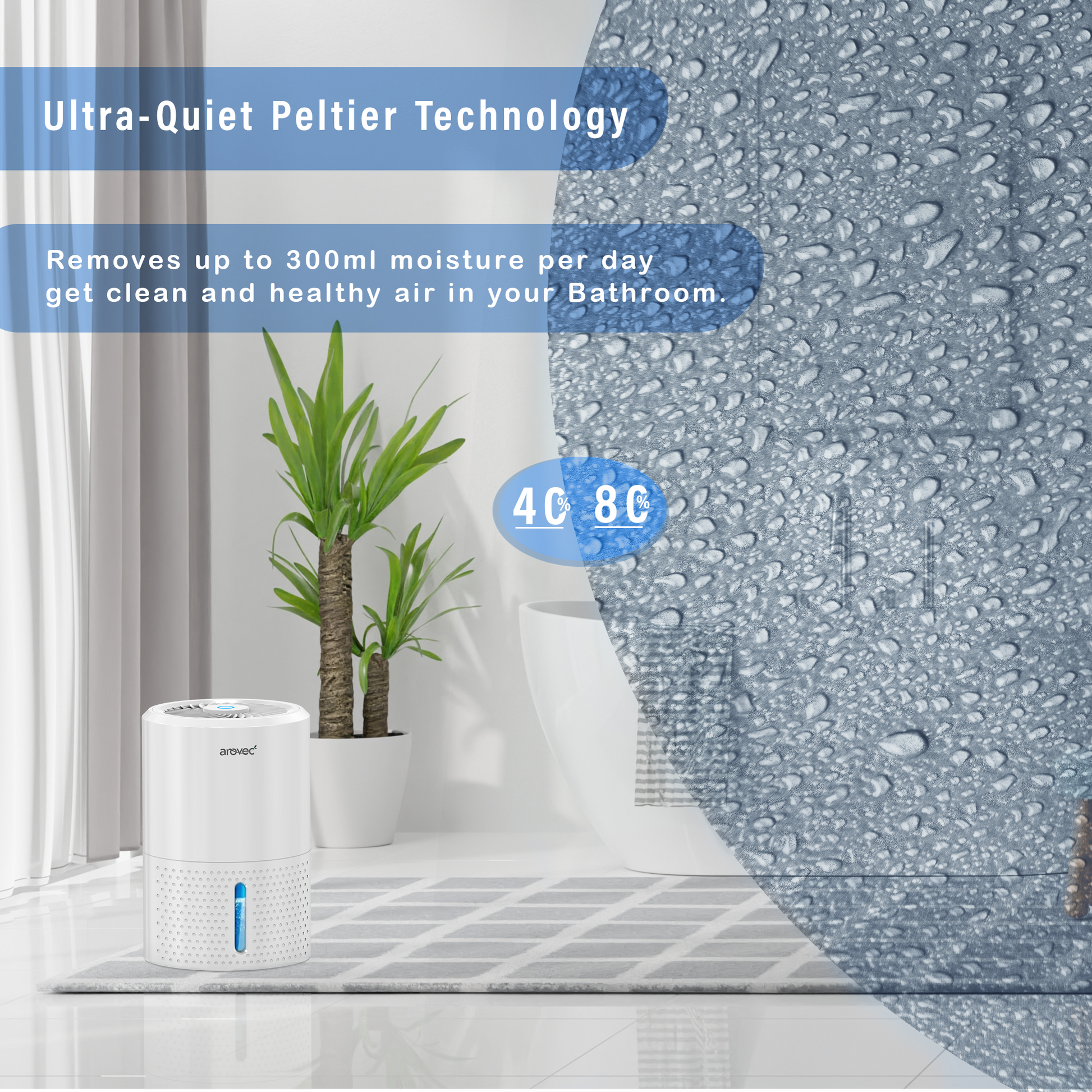 - [COMPACT & BEST CHOICE] Used Peltier technology with no compressor to make the dehumidifier lightweight. Perfect for up to 15 square meters. Unique size and contemporary design make it a perfect fit in normal size rooms, office spaces, kitchen, bedroom, bathroom, caravan, closet, garage.