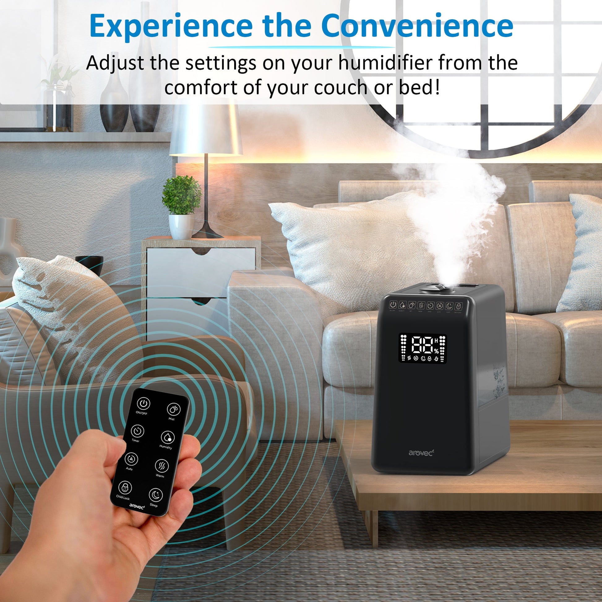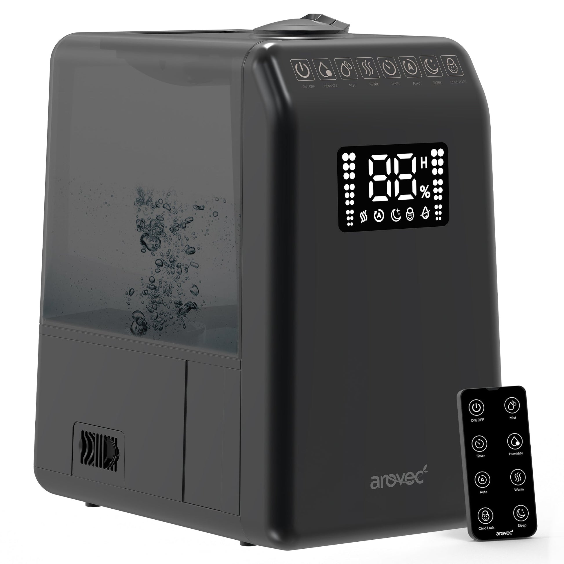- [Set Humidity and Auto Mode On/Off] AroMist-550B is designed to operate within 30% to 90% relative humidity (RH); you can set the desired humidity reliably. It features a smart sensor as Auto Mode function to maintain a predesigned humidity range of 55% to 65%.
