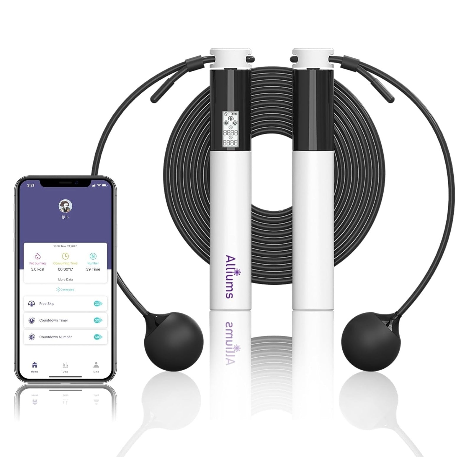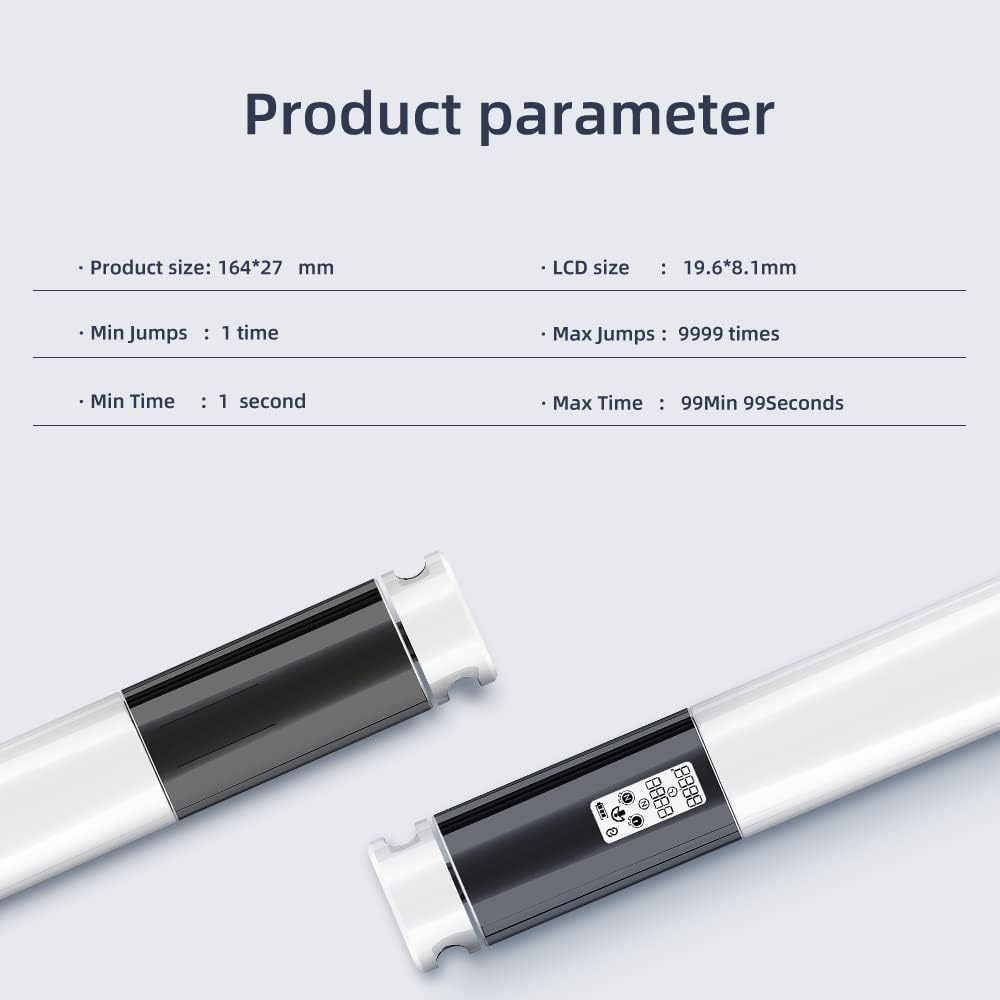 - Bluetooth app tracks jumps, displays on LCD, and creates shareable fitness data.
