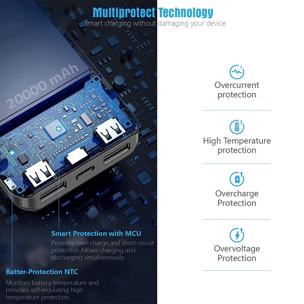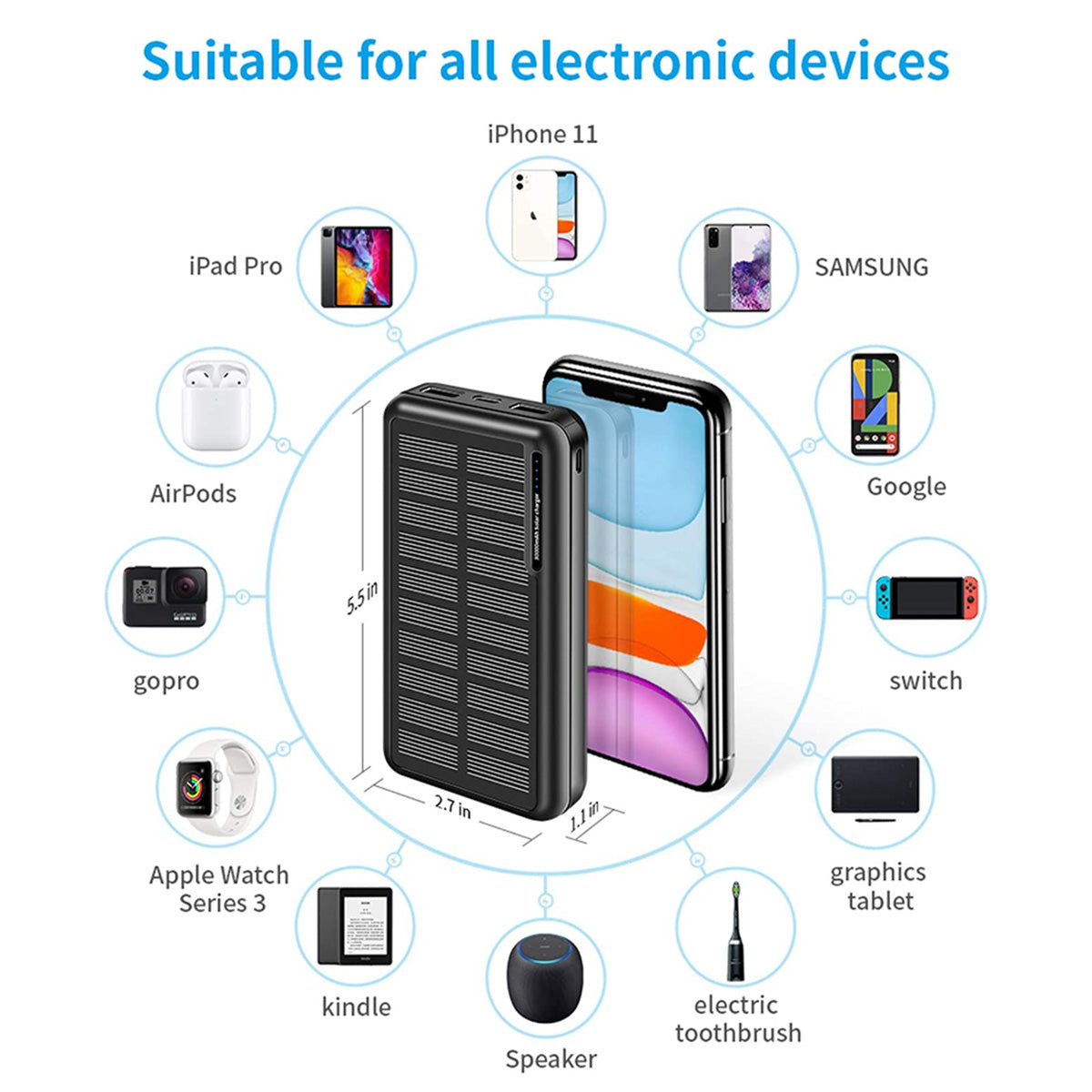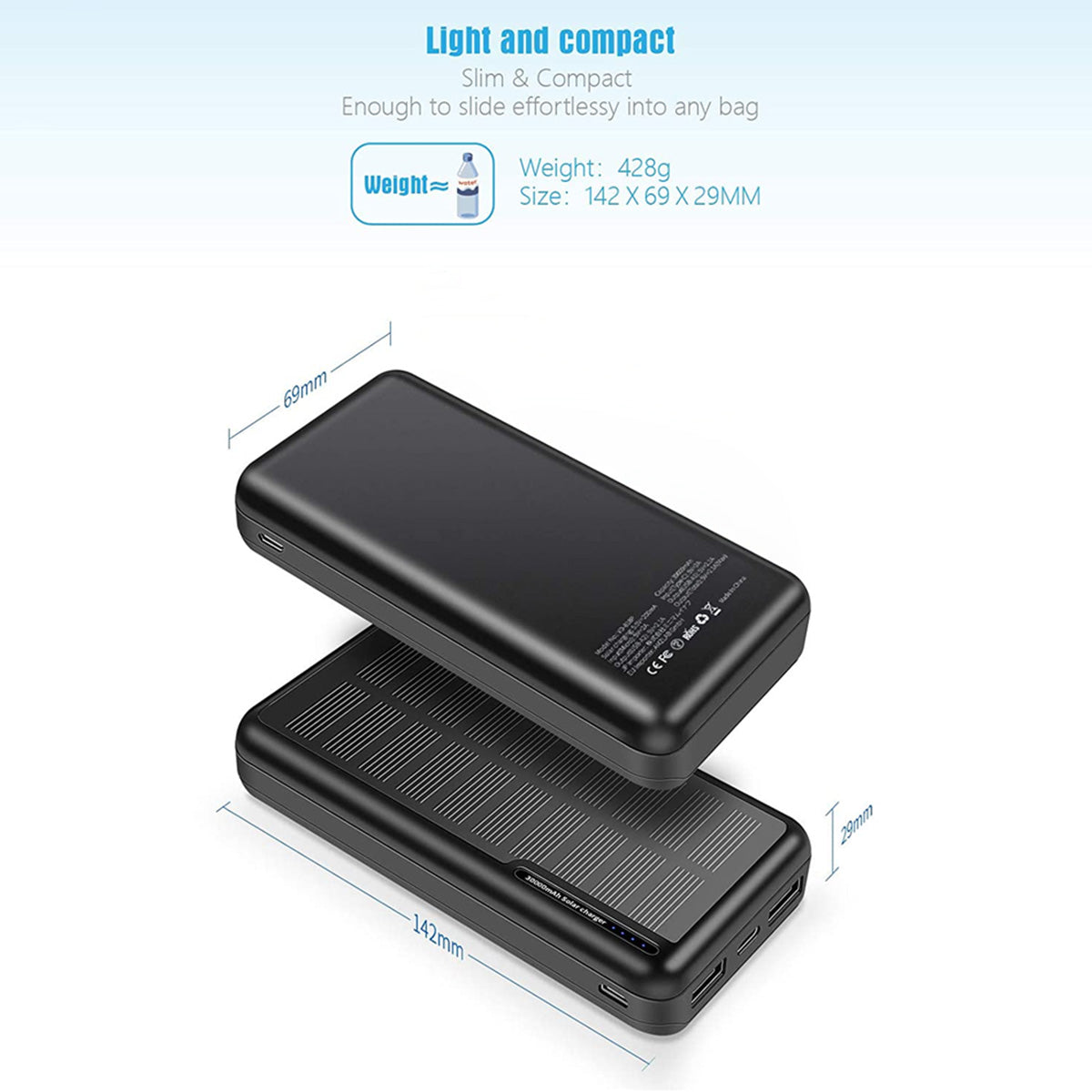 With a substantial 20000mAh battery capacity, this power bank ensures that your devices stay powered throughout your adventures. It features both Type-C and Micro USB input options. The dual USB outputs allow you to charge two devices simultaneously, providing versatile charging solutions for a wide range of devices. Moreover, the solar input charging capability sets this power bank apart, offering an eco-friendly charging option and peace of mind during emergencies when conventional power sources are unavailable. Compact, durable, and designed with the modern user in mind